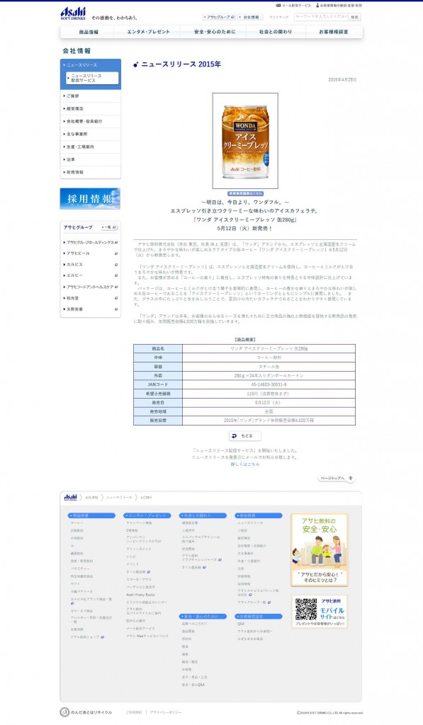 『ワンダ アイスクリーミープレッソ 缶280g』新発売|ニュースリリース 2015年|会社情報|アサヒ飲料