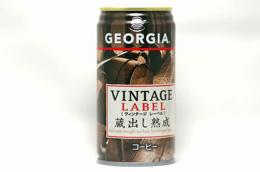 | 前のと飲み比べてみた印象はですね、少し旨みが増した気がする実際のコーヒー感と、独特な、変な言い方ですが、まろやかかつ控えめな甘みを持つ、ちょっと高級なコーヒーキャンディーと言った風味とのまとまりが多少良くなり、飲み始めから終わりまで風味が均一になって、飲みやすくなったかな~って感じがします。でもそれによって、良くあるジョージア缶コーヒーの一つって感じで、ヴィンテージレーベルならではの個性が薄くなってしまった気がしてしまうのも確かです・・・。とは言え、それは飲み比べてみて始めて判るって程度、全体を通して雰囲気は多少なりとも残ってはいますから、以前のがお好きだった方は今回のもすんなりOKでしょうし、ダメだった方は今回のも引き続きダメってとこでしょう。と、中味の印象はこんなとこですが、気になってしょうがなかったのが缶のデザイン。申し訳ないんですけど、何て言うかやる気がない感じがするのは気のせい?。 | 品名:コーヒー 原材料名:牛乳、コーヒー、砂糖、クリーム、香料、乳化剤、カゼインNa、安定剤(カラギナン) 内容量:190g |