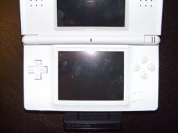 画面の明るさも十分です、DSLiteと比較しても遜色無い様に見えます。また画面は小さいですが、一つ一つの画素が小さいせいかとってもキレイに見えますね。