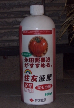 この住友液肥がキモのようです"有機肥料"とかを使うのかと思っていたんですけどこれがベストなんだそうです、これが一番見つけるの大変かな~なんて思ってたんですけど、1軒目のお店で見つかりました。 |