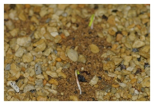 ちょっと後れて、もう一つのプランターも!。やった~!。まだまだ小さな芽だけど、とても大きく輝いて見えます^^。と言うことで、上記プランターと共に、住友液肥を約1000倍に薄めたものを、確信を持ってあげることができました^^。