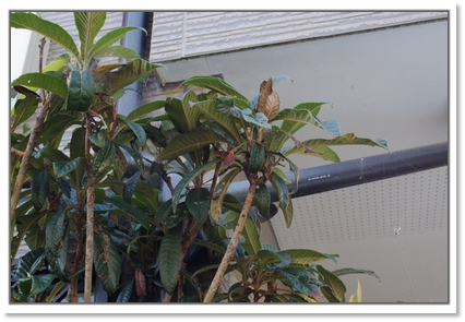 投稿日: 2012/7/26 木曜日2012/7/27 金曜日 投稿者: nanahimenet1580日目(24年度)、24年7月26日(木) あらためて言うまでもなく・・・、倒れそうに暑い1日でした^^;。 今日も朝方全ての野菜たちにお水をあげてあります。 たまには・・・^^;。ビワに新しい展開がありました!。新しい葉を広げています!。 ちなみに上部はこんな感じ。意外とこんもり茂っていますね^^;。