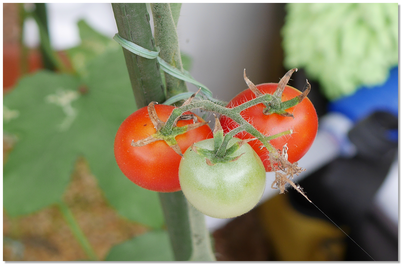 投稿日: 2015/8/11 火曜日2015/8/13 木曜日2528日目(27年度)、27年8月11日(火) 暑いには変わらないのですが、ここのところどこかで雨が降るので、少しではあるけど、また、気のせいかもしれないけど涼しさを得ることができています^^。 朝方水やりを行っています。 ルビーノ2段目の実です。 3段目は不発。4段目の実です。