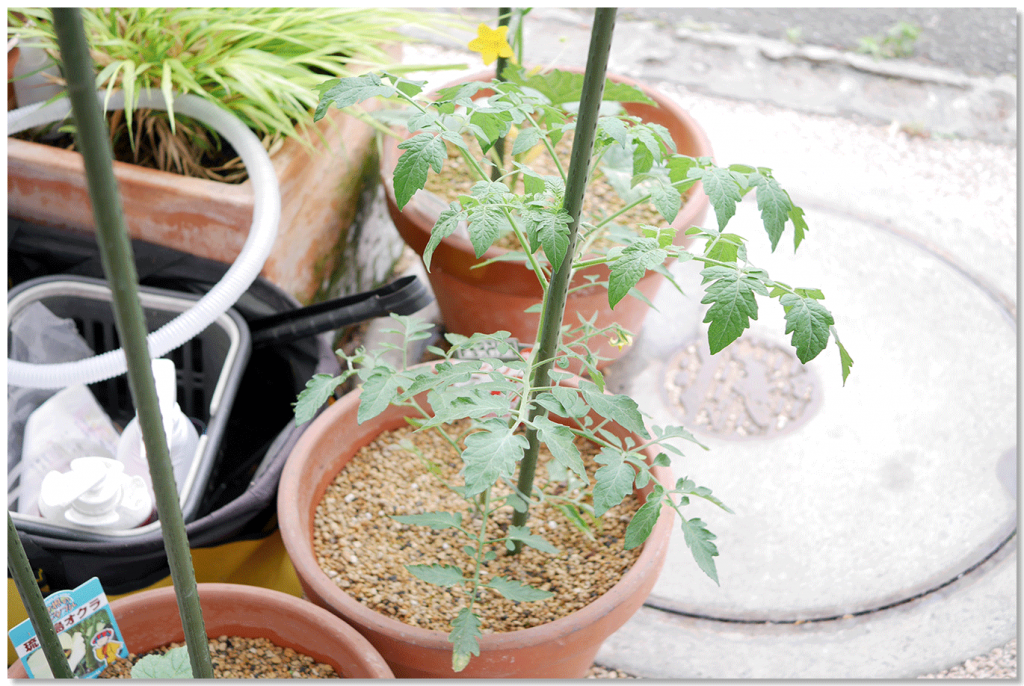 シュガーミニ最初の花房です。トマトトーンは、欲張ってあと2,3開花してからにします^^。