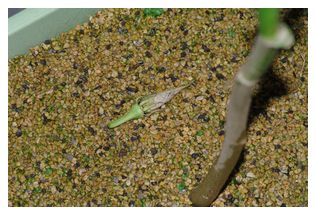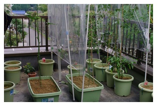 ピーマンには、コレまでお伝えしていたものの他にも実が膨らんできてくれていましたよ^^。葉っぱの陰になってしまっていたみたいで気付きませんでした。しかし、この実も形が今一つですね~、細長く先が尖って、何かシシトウみたい。あっ、でも、もしかしてこういう品種なのかもしれないですね?。