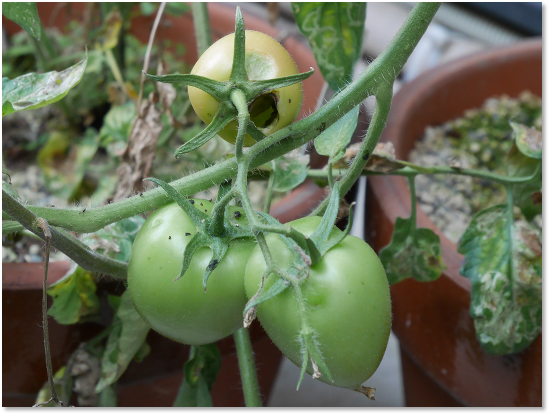 投稿日: 2014/10/21 火曜日2014/10/25 土曜日2381日目(26年度)、26年10月21日(火) 弥が上にも冬近しを意識させられる冷たい1日・・・。季節がしっかり廻っている証拠とは言え・・・。 イタリアントマトの実ですが・・・。 まだ熟していないのに、完璧にいかれていますね~・・・。ま~、彼らも生きるために必死なんでしょう・・・。