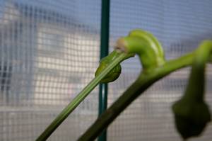 温室内の"ピーマン"の様子です。この実はずっとこのまんまの大きさで変化は無いんだけど、萎れちゃったり枯れちゃったりはしないのでなんとも・・・。 |