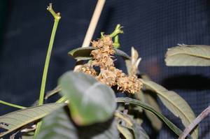 "びわ"の花房から新しい葉みたいのが伸びてきました。 |