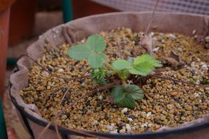 "いちご"は、土がこぼれて根が露出しちゃってたとこへ、 ひゅうが土 を足しておきました。 |
