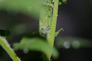 "なす"の葉っぱには、アブラムシが発生しちゃった・・・。 |