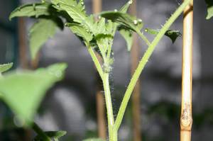 まずはこの"ホーム桃太郎"の花房に一吹きしてみました。 |