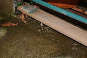 見えるかな~?、すのこの下に根が伸びてるの。"トマト"の鉢の下からのような気がするんだけど・・・?。もしそうなら、もの凄い生命力を感じるな~^^。 |