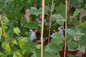 一方心配なのが"なす"ですね~・・・。お花は咲くんだけど実になってくれないんだよね・・・。 |