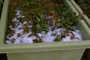 幸い雪の影響はこの程度ですみました。でも、冷たさに参ってしまってるようで、なんかかわいそうな感じです・・・。 |