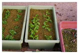 もう収獲しても良さそうな"水菜"。"お家では"かもしれませんが、かなり栽培が容易な気がしますよ、お勧めしておきます^^。 |