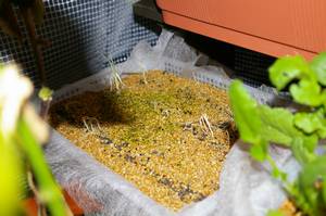 葉ものの"九条ネギ"や"日本ほうれん草"もユックリながら確実に育ってくれているようです、"九条ネギ"の方は少しずつ緑の部分が伸びてくれていますし、"日本ほうれん草"も葉っぱが濃くなってきましたから^^。