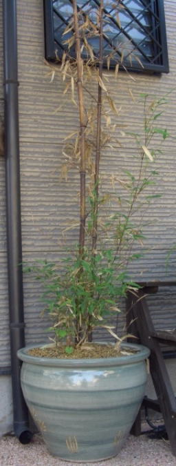 竹は何か放っておいてもグングン伸びるイメージが強くて、買ったまま置いておいてのですが・・・、枯れてしまいました、そこで購入時に入っていたプラスチックの鉢から出して根に付いた土を洗い流し、焼き物の鉢へ植えなおしました(土はひゅうが土です)。